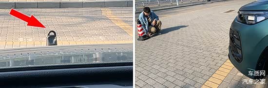 在测试前方视野环节,我们采用高70cm的桩桶作为参照物,随后调整车距,直至在主驾驶位可以看到桩桶上沿。经过测试,桩桶与车头最终测得的数据为2.805m,在测试过的同级别车型中处于中游水平。