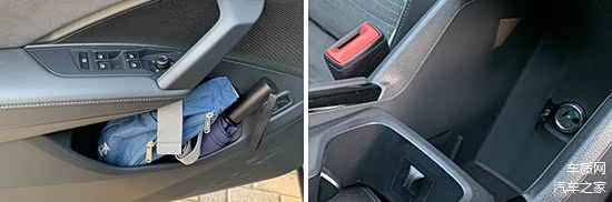 经过实测,评测车储物能力中规中矩,除了墨镜和抽纸外,其余固定物品都能找到合适的位置摆放。需要指出的是,评测车的车门储物空间容积较小,有待优化。