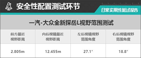 一汽-大众全新探岳L作为全新换代车型,不仅在外观和内饰设计方面进行优化,还拥有更宽敞的车内空间和更丰富的车载娱乐配置,非常符合国内消费者的用车需求。从测试成绩来看,评测车在主驾驶座调节行程、后方视野和左外后视镜视野范围方面表现不错,但在储物空间数量、右外后视镜视野范围方面还有优化的空间。综合来看,一汽-大众全新探岳L的实用性表现符合预期,可以满足家庭日常使用所需。