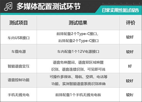 经过实测,评测车能够识别并完成除“打开车窗/打开主驾车窗/打开天窗”之外的指令,语音识别准确,反应速度较快。此外,评测车还支持语音免唤醒词、语音双区域唤醒识别、语音连续识别、可见即可说,便利性表现不错。