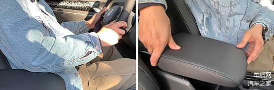 前排中央扶手采用上掀式设计,造型规整且尺寸较大,表面采用软性材质包裹,枕靠舒适性不错。同时,其还支持前后移动和角度调节,驾驶者在驾驶过程中,可以将肘部倚靠在上面。