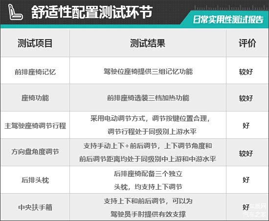二、舒适性配置测试环节
