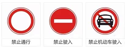 禁止驶入多见于单行道的出口,主要是针对机动车和非机动车;禁止通行则表示禁止一切机动车和非机动车、行人的通行,有机动车图案的禁行标识则只有记汽车不能进入(不禁摩的城市摩托车是可以进入的)。“禁止通行”标识不多见,禁止一切车辆行人通行,这三个都是“禁止”类标识,一旦驶入就是违法,切记不要乱闯。