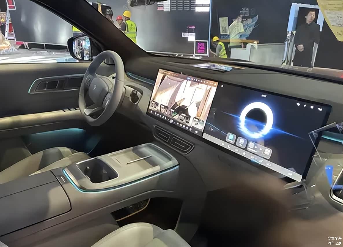 进到车里瞧瞧,前排这布局,熟悉不?副驾驶那边的大联屏加上HUD抬头显示,三屏联动,这套组合拳现在国内新势力品牌可太流行了。