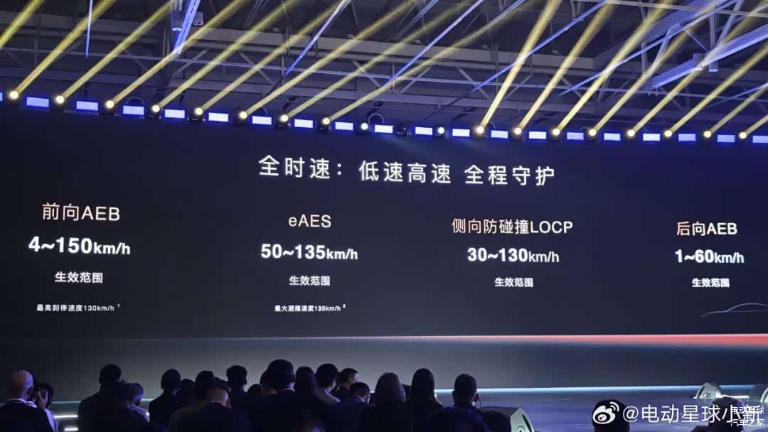 安全方面,ADS 4 升级到 CAS4 全维防碰撞系统,包括 4-150km 时速的前向 AEB 紧急制动,40-135km 时速的 eAES 紧急避让,30-130km 时速的 LOCP 侧向防碰撞,1-60km 时速的后向 AEB。