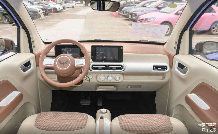 宏光MINIEV第三代马卡龙车身小巧,三米左右的车长,2010mm的轴距,车内有8英寸的中控屏,支持蓝牙/音乐,主副驾气囊,高配版续航达215km,日常通勤方便好开。