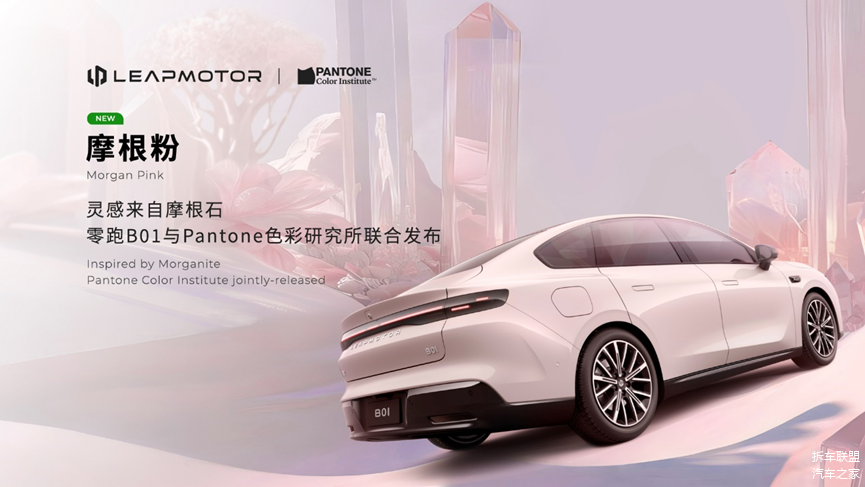 在外观设计上,零跑 B01 巧妙运用 “自然科技美学” 理念,塑造出独一无二的车身造型。流畅的车身线条配合精妙的空气动力学设计,使其风阻系数低至 0.197Cd,在风阻控制方面超越了保时捷 Taycan 与特斯拉 Model S 等豪华车型。同时,零跑 B01 还推出了全新的 “摩根粉” 配色,该配色由零跑与国际知名色彩机构 Pantone 潘通携手打造,在车展现场吸引了无数目光,成为一道亮丽的风景线。