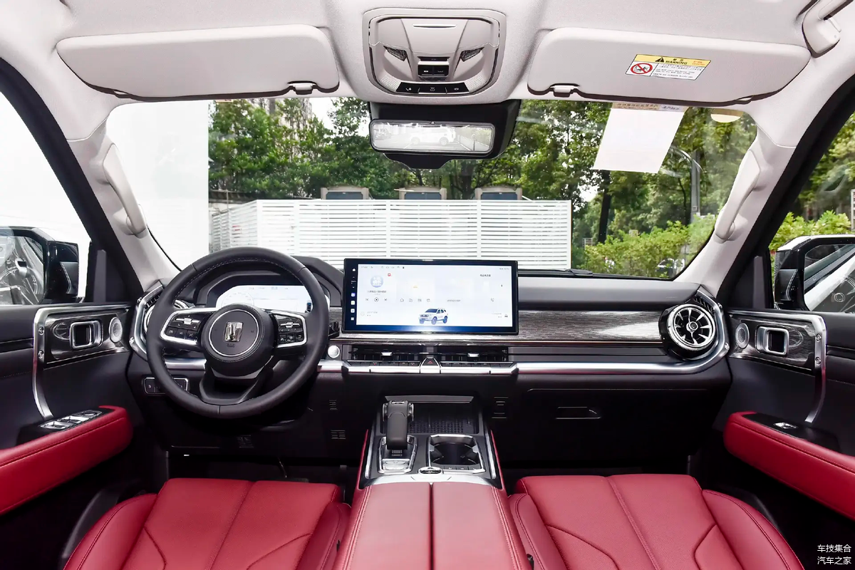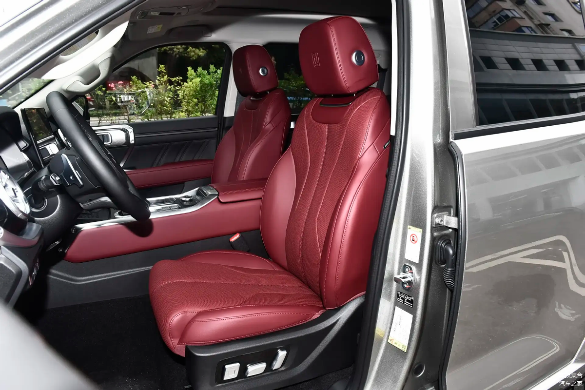 车辆的座椅为全真皮覆盖,并提供了主驾10向/副驾4向电动调节与前排加热/通风,驾驶位还是支持按摩/记忆功能,二排也带有可调杯架。同时,坦克400 Hi4-T可开启的全景天窗、双排隔音玻璃、二排隐私玻璃+手动遮阳帘以及多温区独立空调等等,搭配10扬声器与车载氛围灯,也都会提升舱内舒适性。