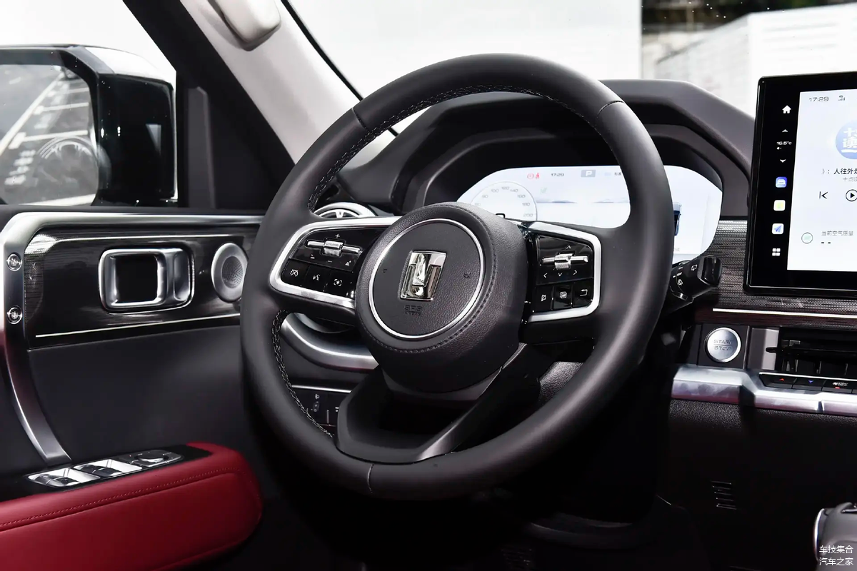 车辆支持L2级辅助驾驶,带有并线辅助、交通标识识别等功能,也能完成全速域自适应巡航,主被动安全方面则有全车6气囊、前后方碰撞预警等等。同时,坦克400 Hi4-T还布局了可透视底盘的全景影像、带雪地的11种驾驶与地形模式,而像蠕行模式、坦克转弯等功能,也能让多路况驾驶变得更轻松些。