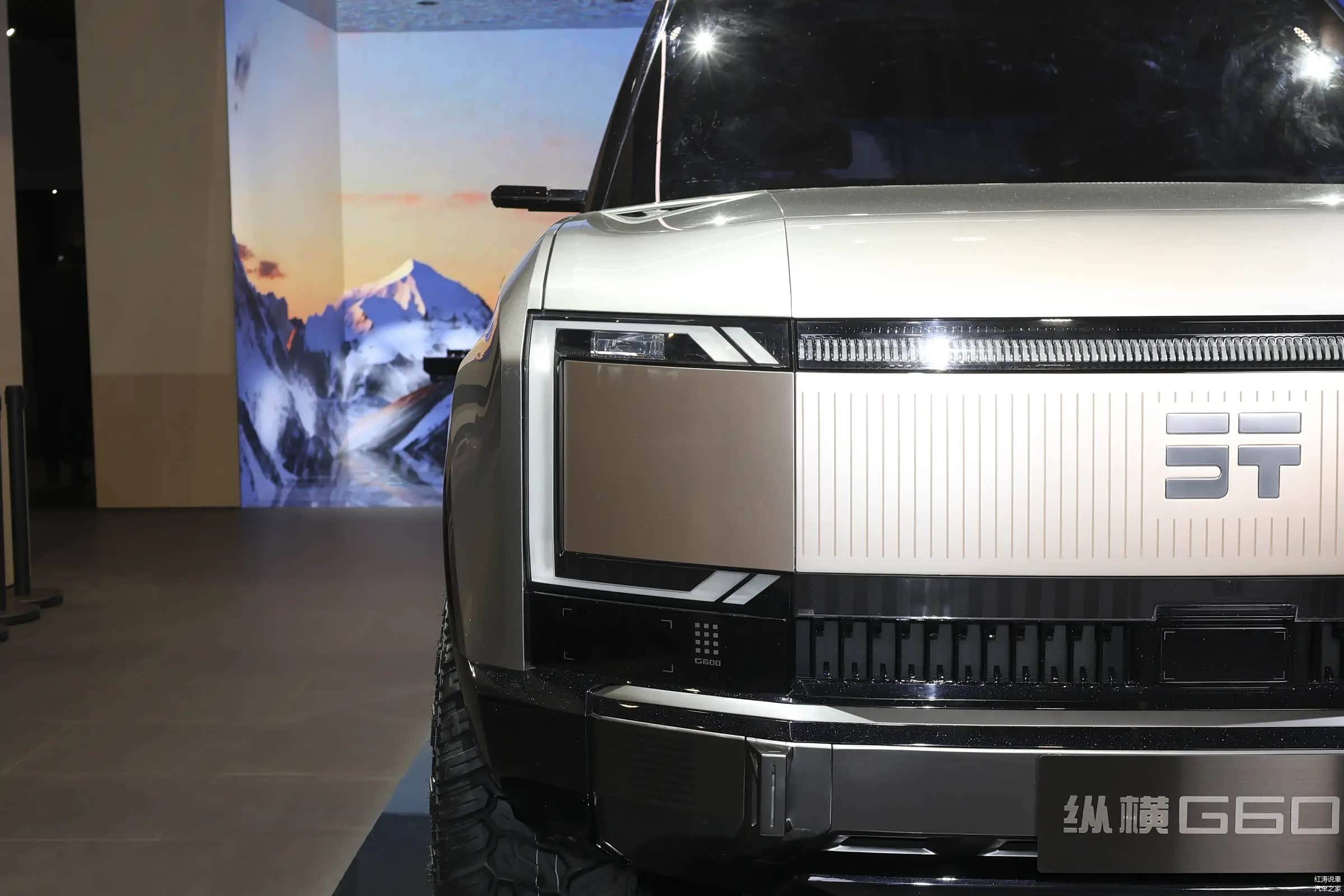 捷途纵横G600还处于概念车阶段,但已经很接近量产实车,从外观来看,采用方盒子SUV造型设计,车头非常高大,前脸封闭格栅中间硕大的车标很醒目,左右还有竖条形纹路,贯穿式的灯带与两侧C型灯组相连,足够的吸引人眼球。