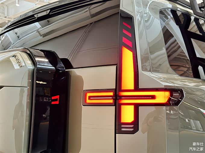 车尾最吸睛的位置莫过于这套名为剑指苍穹的尾灯了,灯组造型以火箭尾焰为灵感,十字形设计主打一个特立独行。同时车尾还配备了一个可进行储物的小书包,可以将部分越野装备置于其中,拿取起来也比较方便。