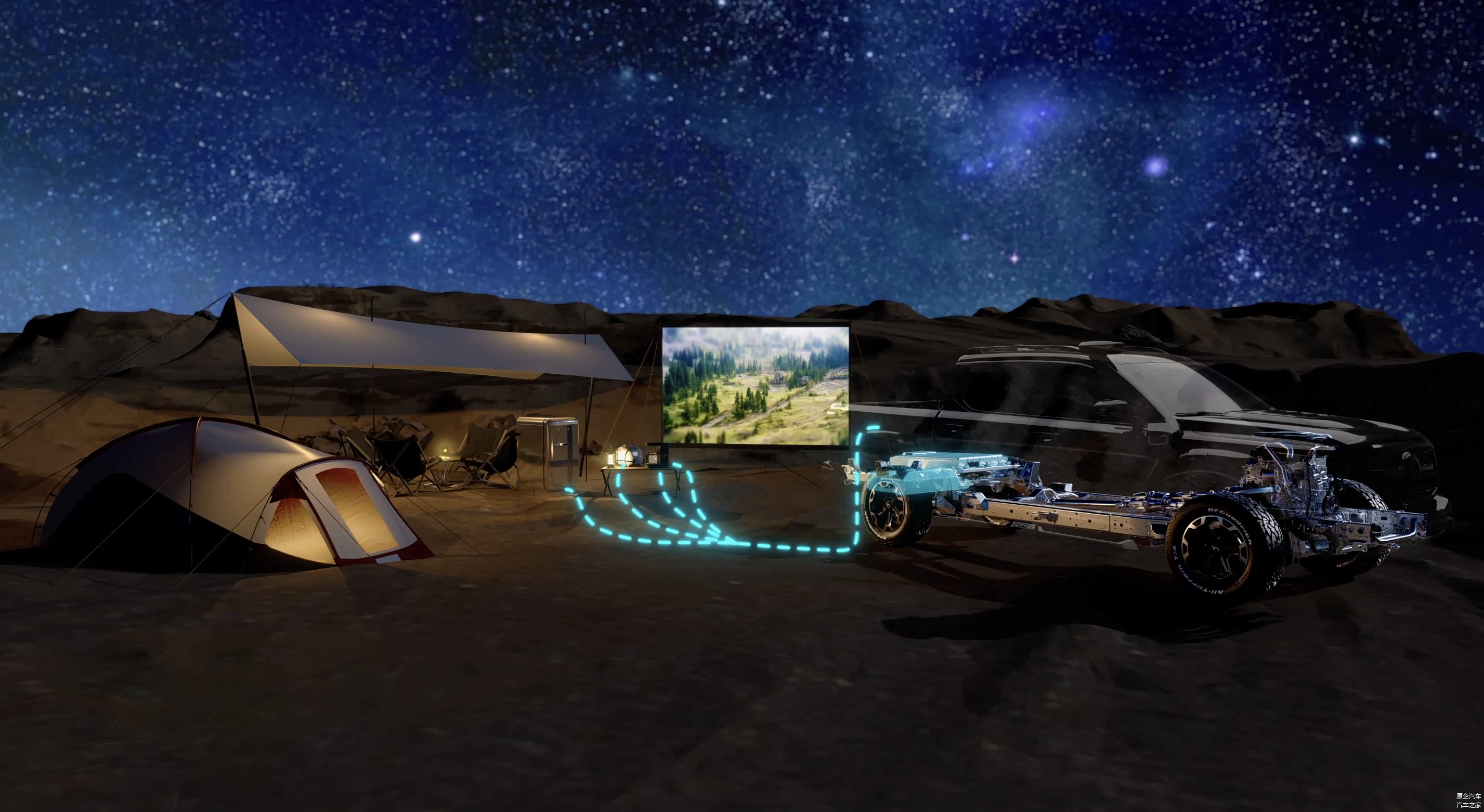 山海炮Hi4-T提供纯电、混动、智能三种动力模式,支持用户根据场景自由切换。37.1kWh电池组可实现NEDC纯电续航115公里,满足城市短途通勤需求。同时提供对外放电功能,最大功率6kW,货箱配备220V电源接口(2.2kW输出),可支持户外照明、野炊、设备供电等用途。此外,车辆标配3.3吨拖挂资质,货箱内置24个锚点与4个挂钩,并预留电源接口,便于拓展改装。