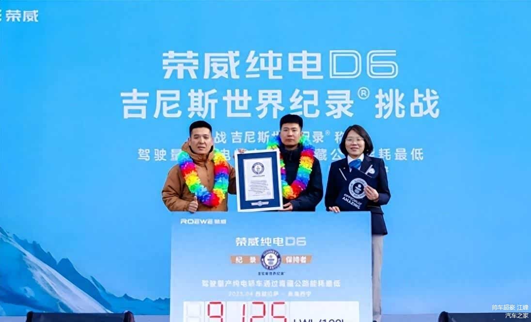最近,上汽荣威D5X DMH的“兄弟车型”纯电版D6,直接带着吉尼斯认证的公证团队,用5天时间跑完了这条“地狱级路线”,百公里电耗不到10度,甚至比某些混动车还省。