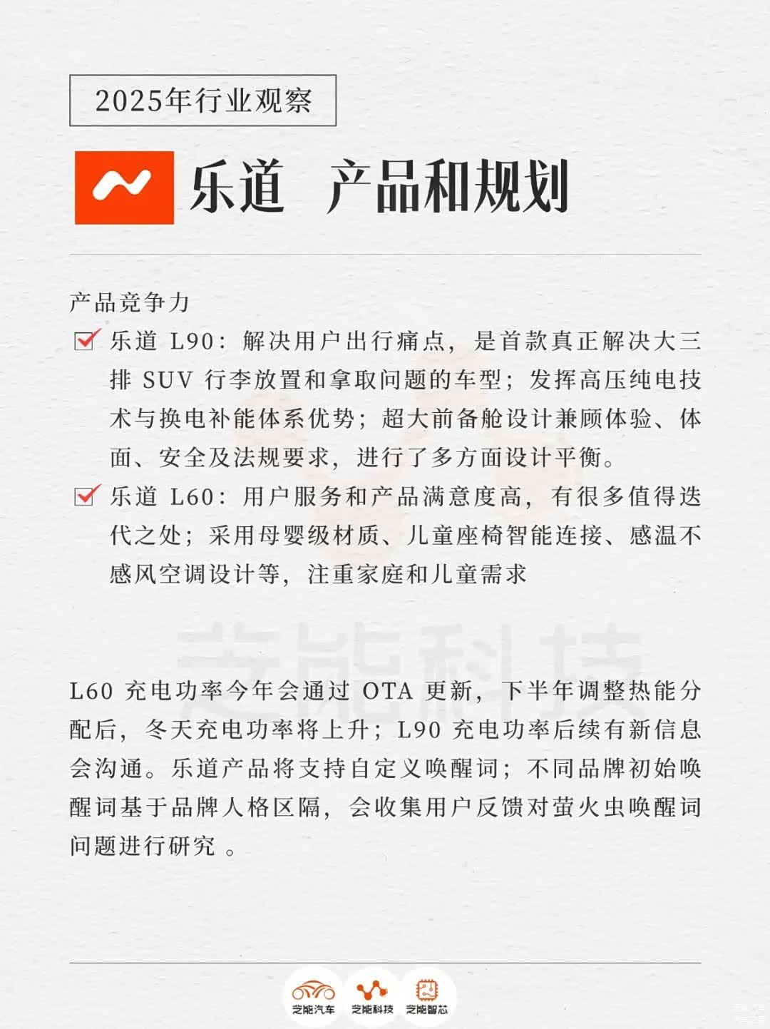 ● 在技术细节上,乐道L60与L90一脉相承的900伏架构展现了平台化优势。