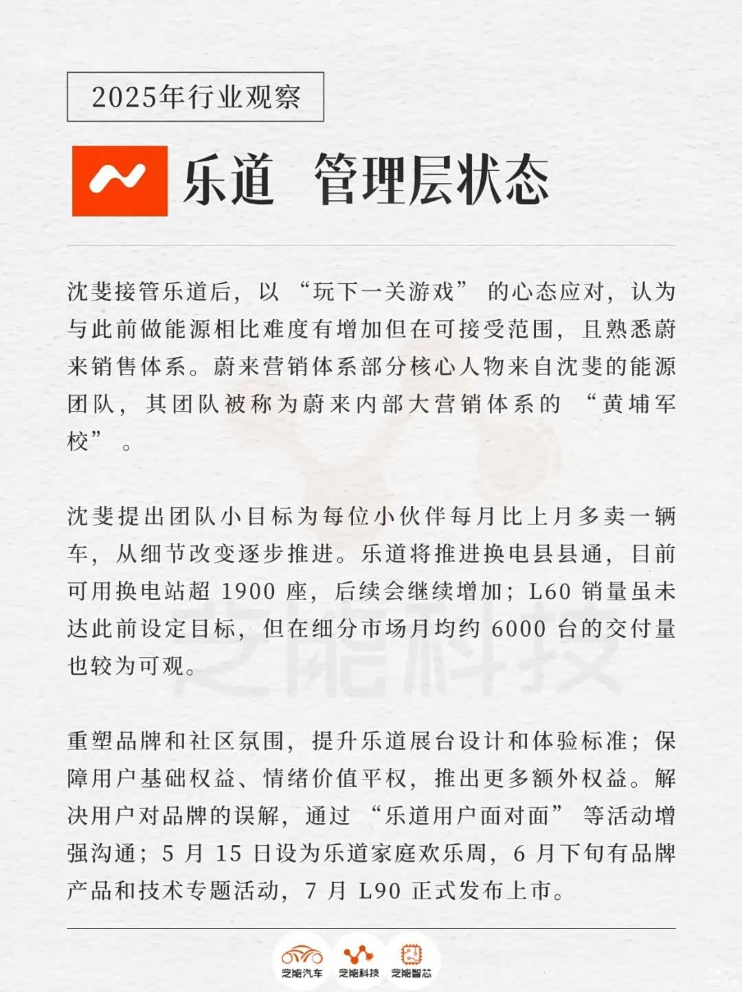 小结沈斐的“润物细无声”理念与“家庭欢乐周”等活动,乐道在品牌重塑与社区建设上的务实路径。面对品牌认知不足与市场竞争的挑战,乐道需持续放大技术优势与用户价值,通过精准传播与社区连接提升市场声量,一步步来吧。
