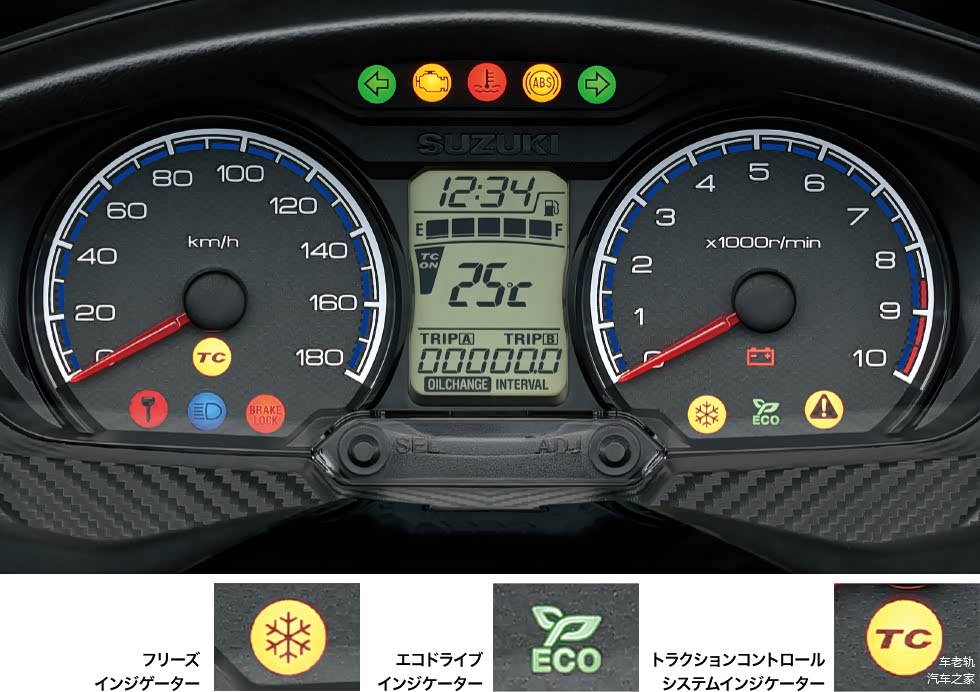 -多功能仪表盘:模拟速度表和转速表搭配LCD显示屏,可显示油耗、温度、里程等信息。