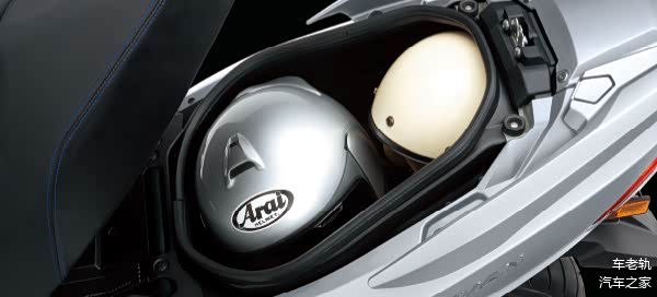 -宽敞的储物空间:座椅下方可容纳1个全盔和1个开面盔,总容量达42升;前箱还提供了额外的储物空间。
