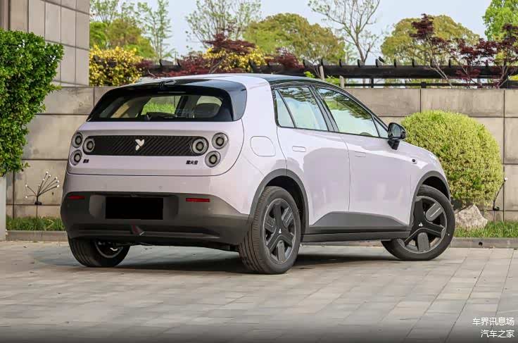 车身采用四轮四角布局,从侧面看较为圆润饱满,而且在该车A柱、B柱、外后视镜、后扰流板等部位均采用了黑色涂装,搭配C、D柱的同色设计,营造出了敞篷小车的既视感。车尾的设计和前脸呼应,熟悉的“三重奏”大灯搭配后包围大面积的防刮蹭材质,丰富了外观设计的视觉层次感。尺寸方面,长宽高来到4003x1781x1557mm,轴距2615mm,是中规中矩的小车体量,对比同级没有任何优势。而说到空间,身高1米77的成年男性坐在第二排并不会感到宽松舒适,这符合其市场定位,但逊色于埃安UT、比亚迪海豚等竞品的空间表现。