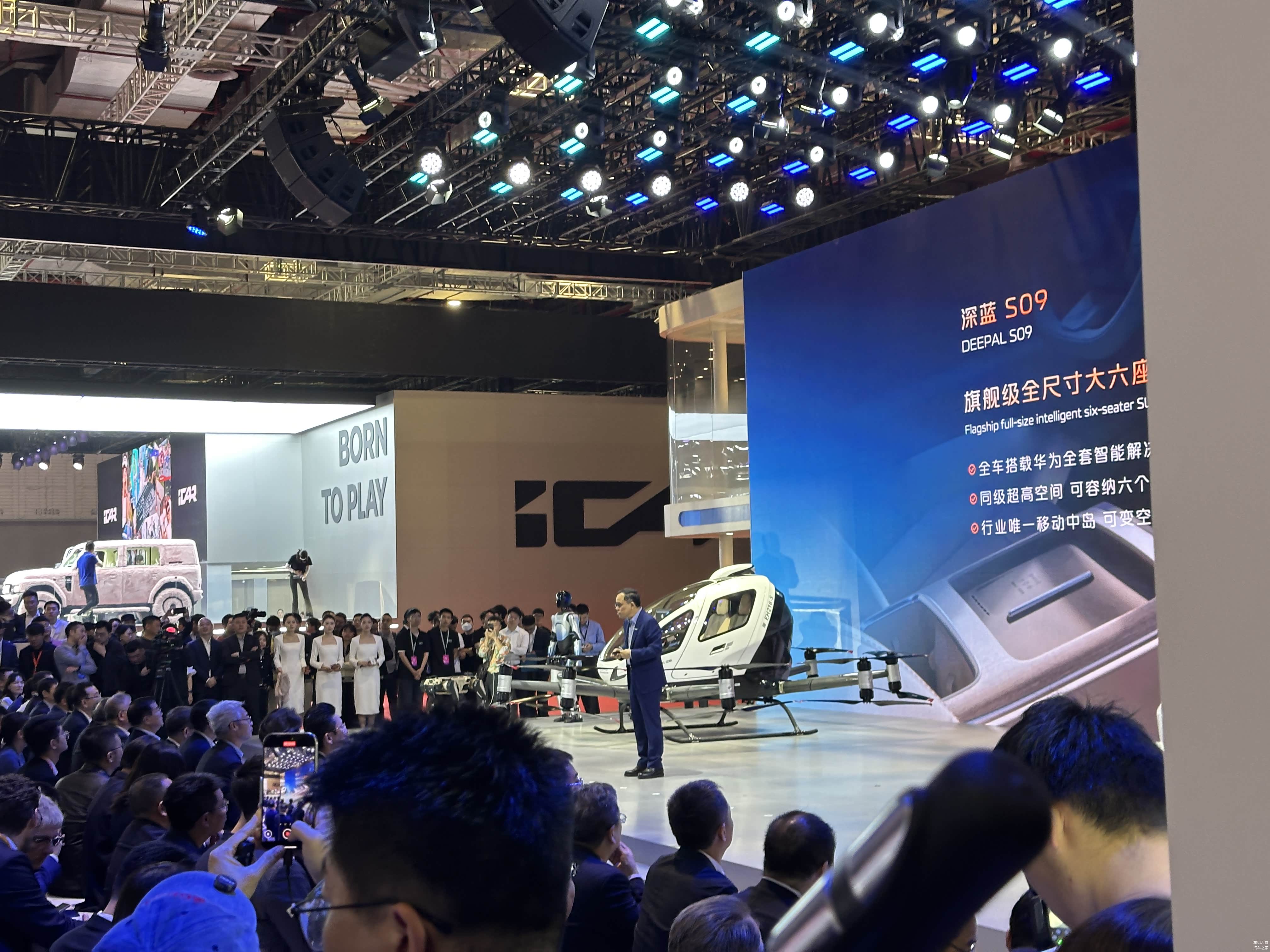 在智驾领域,搭载于长安启源E07的天衡底盘系统,首次公开展示了实时路况自适应功能。展台最引人注目的,当属由飞行汽车、人形机器人、智能外骨骼等组成的“陆海空立体出行矩阵”。这些看似科幻的科技成果,实则指向一个明确的战略意图:以汽车为支点,向低空交通、智能制造、人机交互等领域延伸技术触角,构建覆盖地面、空中、虚拟空间的立体生态。