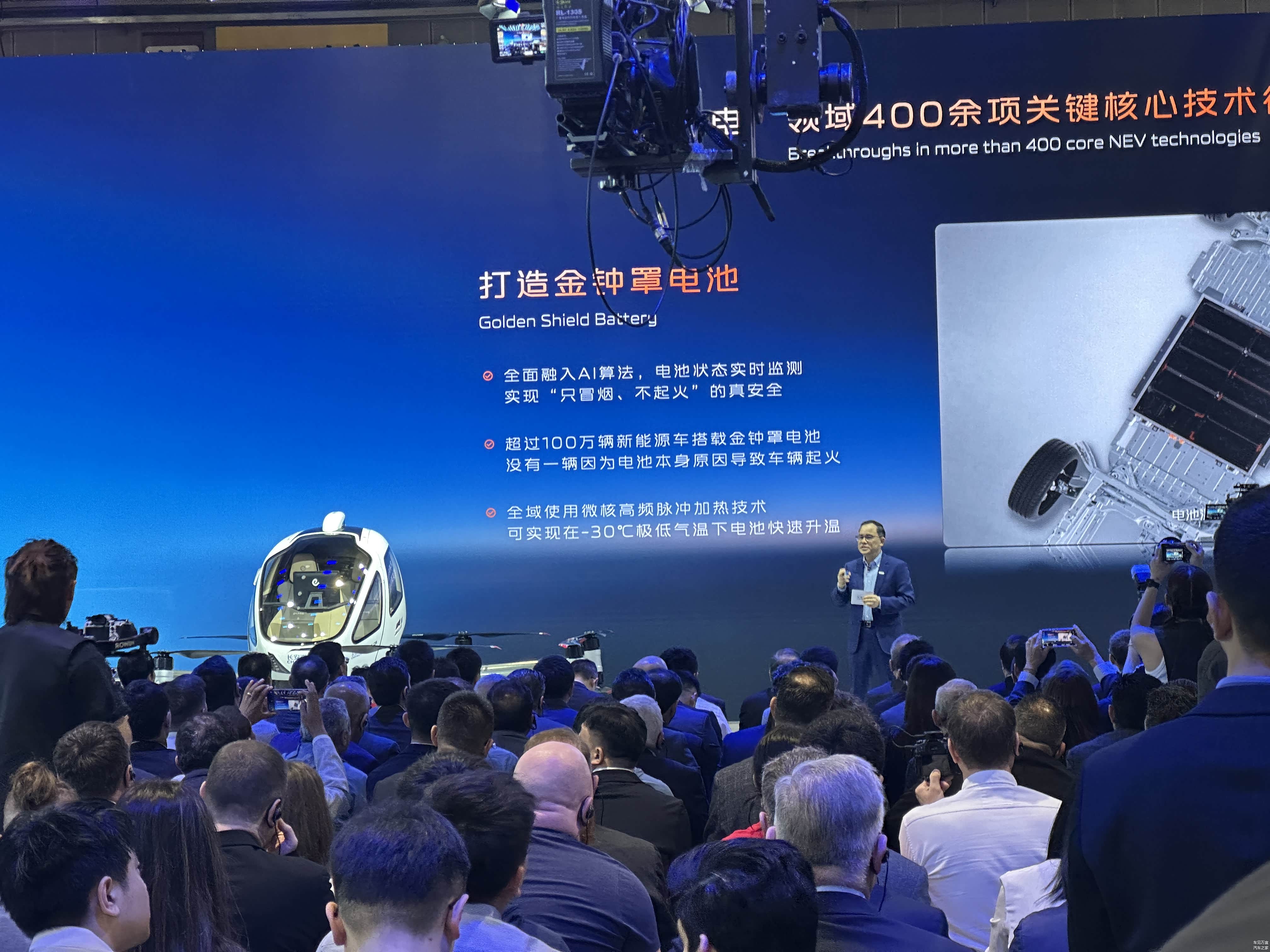 本届车展最具行业震颤性的突破,当属长安金钟罩全固态电池的全球首发。其能量密度突破400Wh/kg,较主流液态锂电池提升70%,极端高温测试中实现“零热失控”。这一技术不仅解决了电池安全与里程焦虑的核心痛点,更为飞行汽车、人形机器人等前沿领域注入可能——预计2025年底,长安汽车将完成飞行汽车试飞,2028年实现人形机器人生产下线。