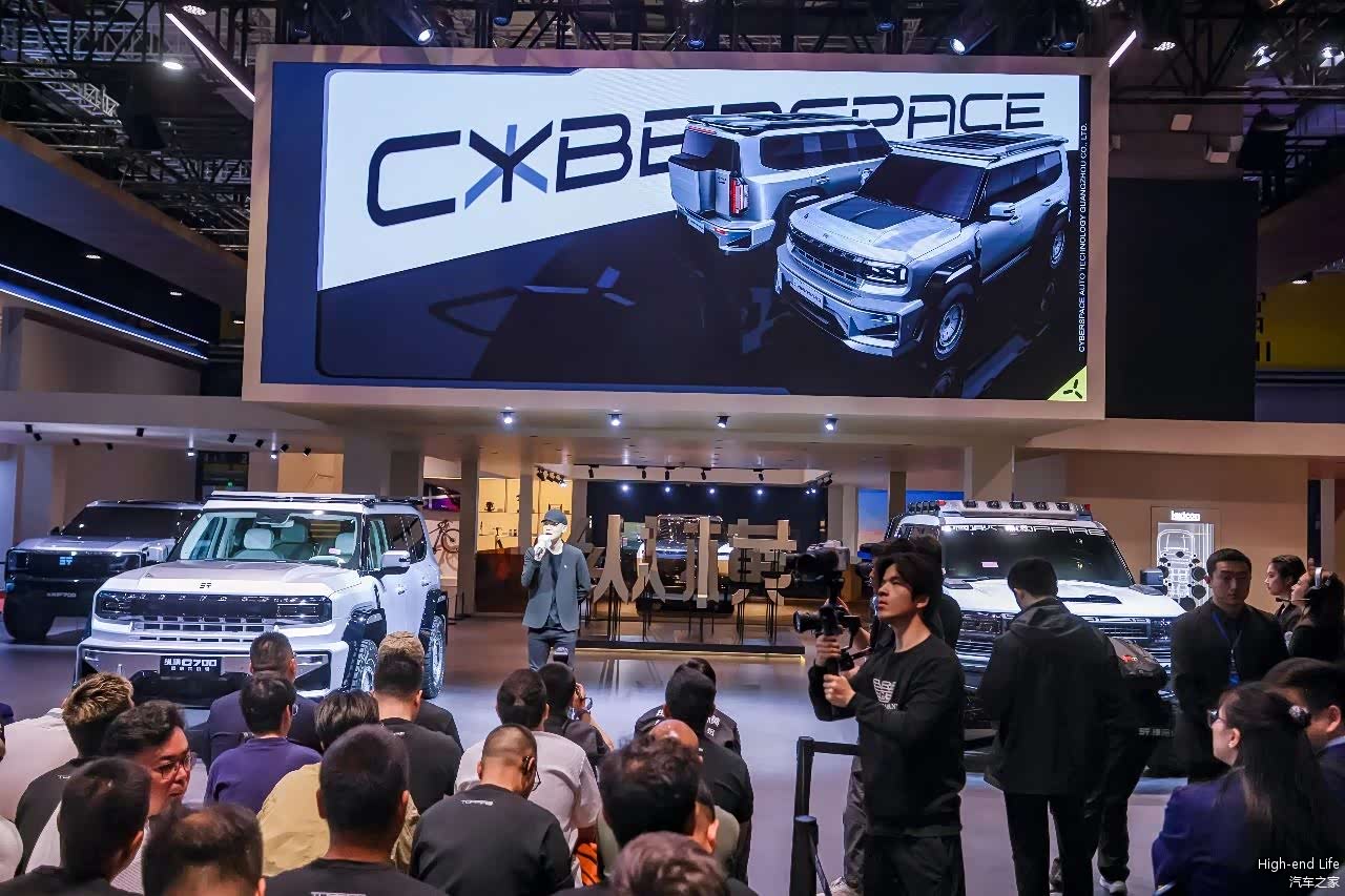 超境汽车则用未来主义设计打破传统越野的粗犷印象。哑光49银车身配合幻境白内饰,在展馆灯光下呈现出星际战舰般的质感。最具突破性的是贯穿式示廓灯设计——这条由268颗LED组成的灯带不仅具备地形警示功能,还能通过车机系统自定义灯光语言。隐藏式武器库更显巧思:电动开启的尾门储物格内嵌工具固定系统,可整齐收纳斧头、工兵铲等装备,将实用性与美学完美融合。