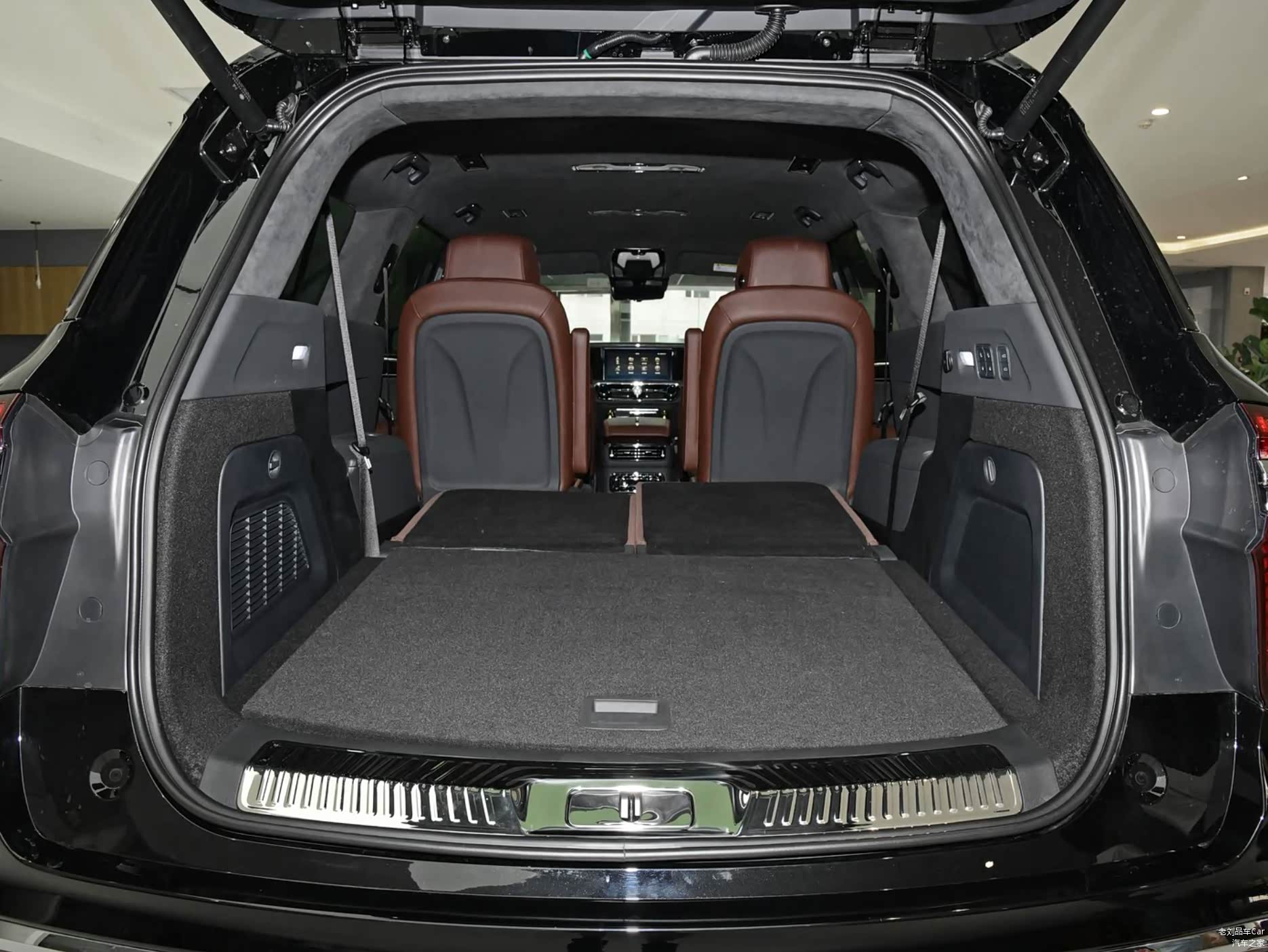 车身尾部中央一条细长的贯穿式尾灯,在下面还有一个银色的镀铬装饰条;两侧是分体式尾灯,点亮后呼应了葵花瓣造型。国耀定义为全尺寸SUV,所以后备箱的容积也非常大,有着充足的储物空间,可以轻松容纳大量行李和物品。