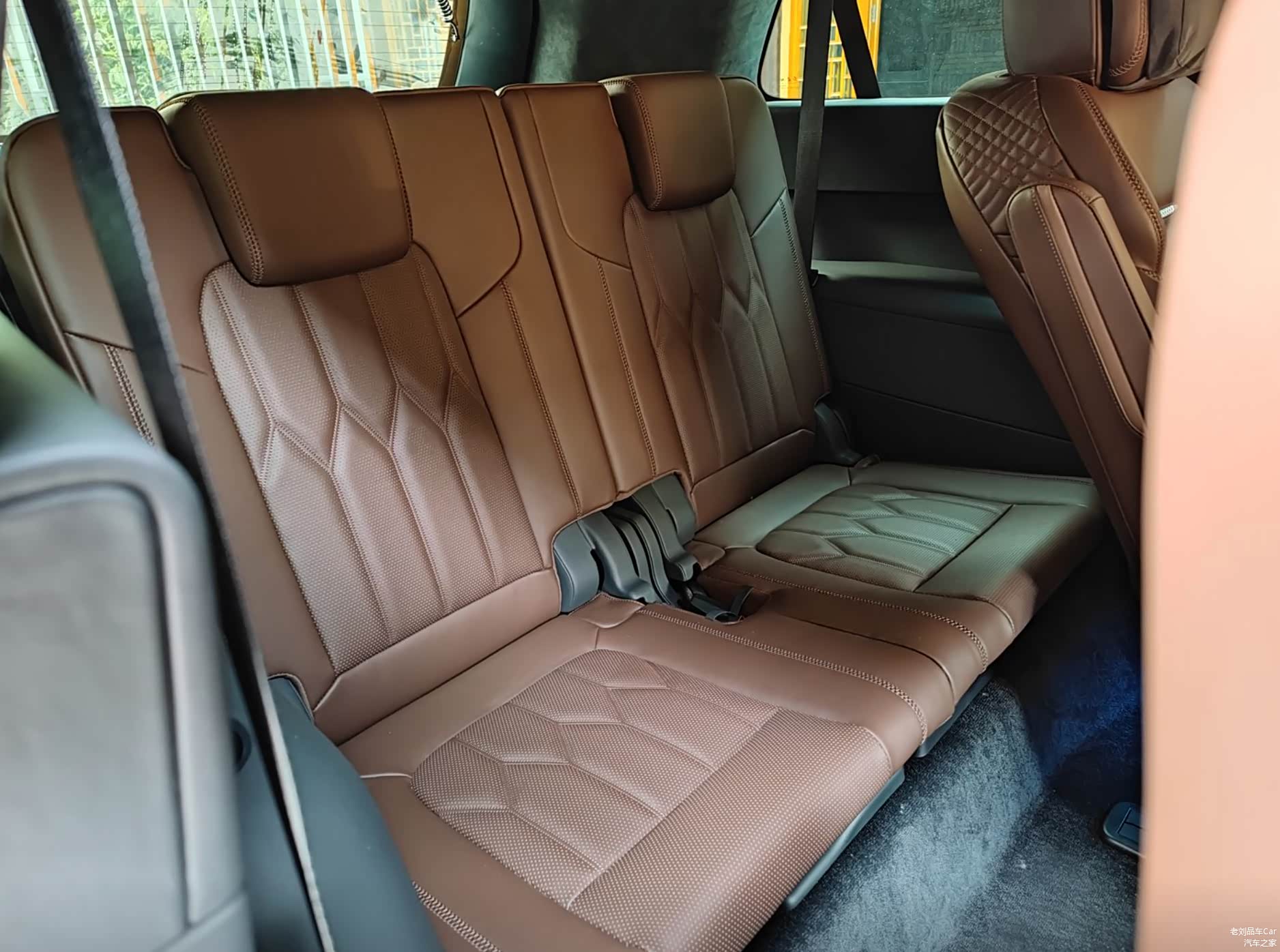 试驾车是六座版本,第三排水杯架、独立的出风口都有配备。第三排空间也非常充足,将第二排座椅调整至舒适位置后,腿部空间还有一拳的距离,头部到车顶也有一拳半左右,丝毫感受不到束缚感。