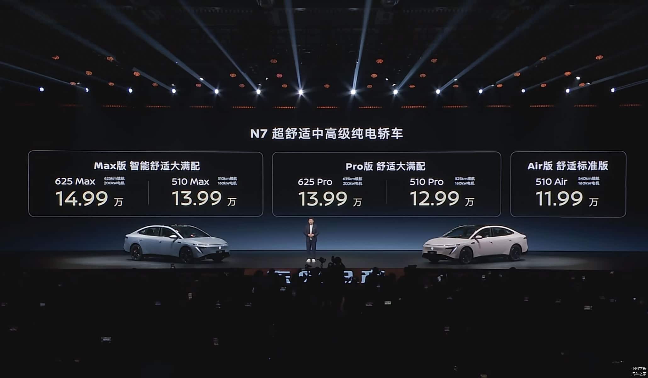 日产N7提供两种单电机版本,最大功率分别为160kW与200kW,匹配58kWh与73kWh磷酸铁锂电池组,CLTC续航分别为525km/540km和635km,底盘采用前麦弗逊+后多连杆悬架组合,配备全域智能防晕车系统。