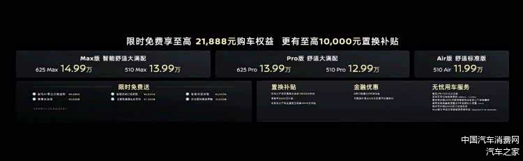 同时,对于首批购买Pro版和Max版的用户,东风日产限时送出至高21888元的购车权益,包括副驾AI零压云毯座椅,科技选装包(智能灵动灯语系统、主驾双通道头枕音响、前排双升降扬声器),智能冷暖冰箱,以及燕麦米灵感车色。此外,东风日产还发布了诚意满满的购车权益,包括至高10000元置换补贴、0首付起最长5年期低息金融优惠、以及涵盖质保、充电、用车等方面的无忧用车服务。