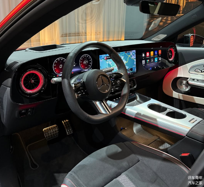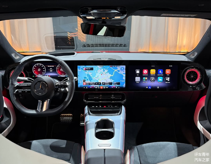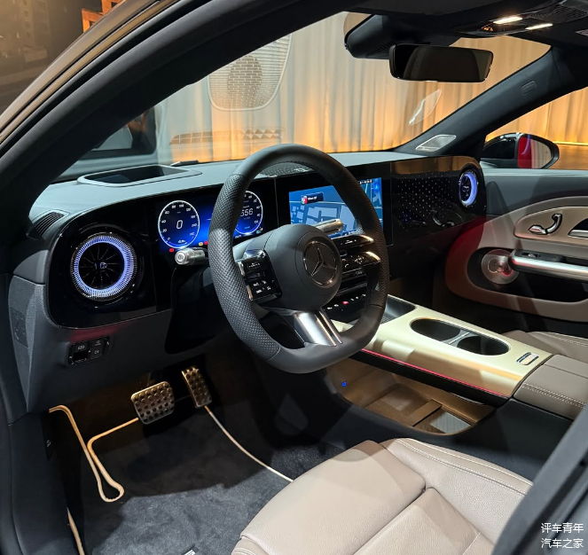 内饰方面,新车采用了全新的布局风格,左侧是皮革材质包裹的三幅式多功能方向盘,前方是由10.25英寸液晶仪表盘+14.6英寸中控显示屏和14英寸副驾驶娱乐屏组成的三块大屏,并内置了MB.DRIVE系统,可实现L2+级驾驶辅助,相比现款车型科技感强了不少。