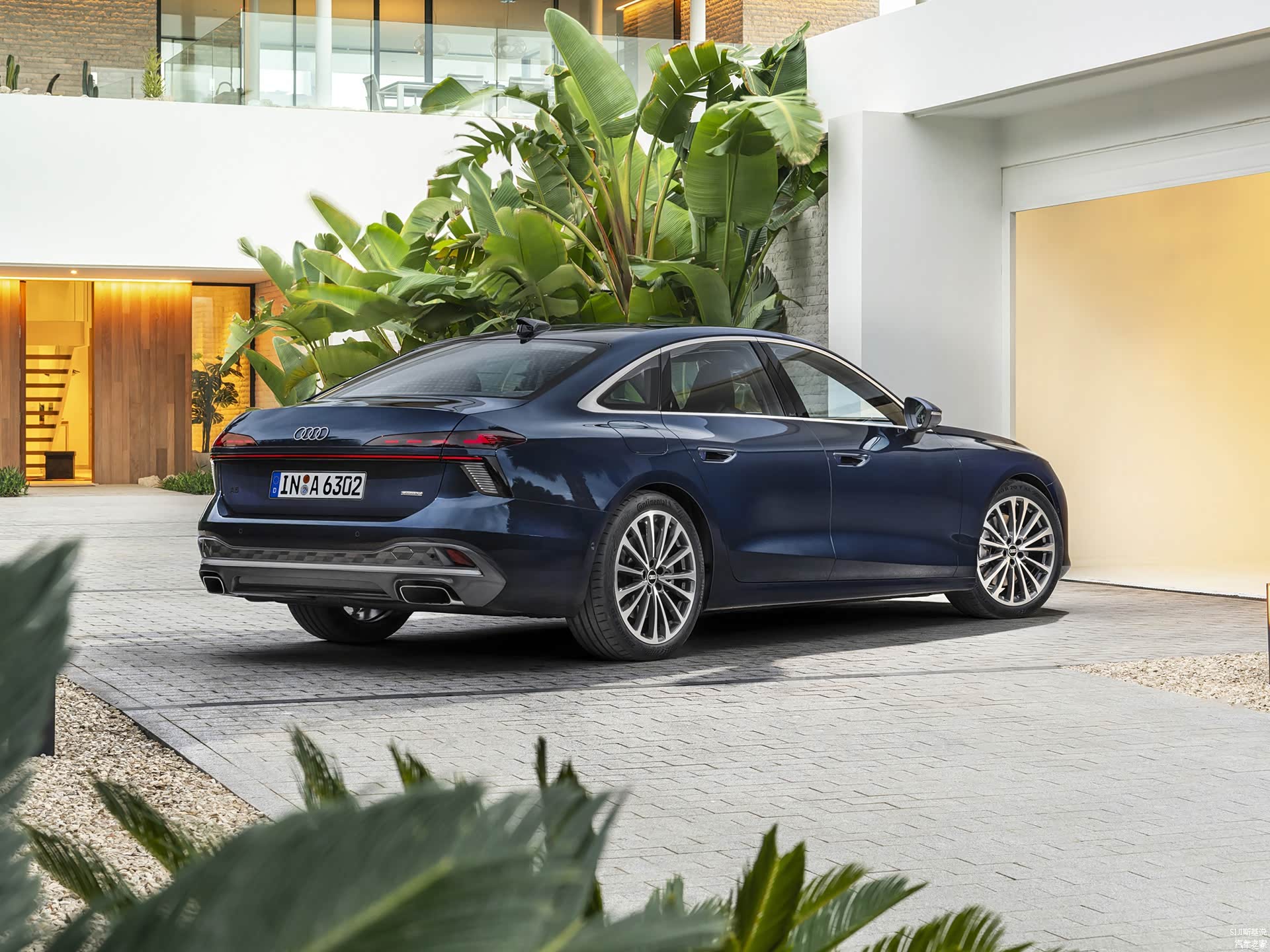 具体来看,在进入全新一代设计语言之后,奥迪A6的“嘴”是更大了,旅行版车型上见过的大灯和中网也出现在了三厢版上,不过相对运动风格的旅行版,此次发布的三厢轿车搭载了豪华版套件,整体的线条一下就简洁了下来,看上去商务了不少,当然这也符合奥迪A6本身的定位。车侧和尾部依旧是标准三厢车的造型,后备箱也是正常的开启方式,同时尾部还有一个分体式的尾灯,看上去有点怪怪的,不知道大家适不适应。