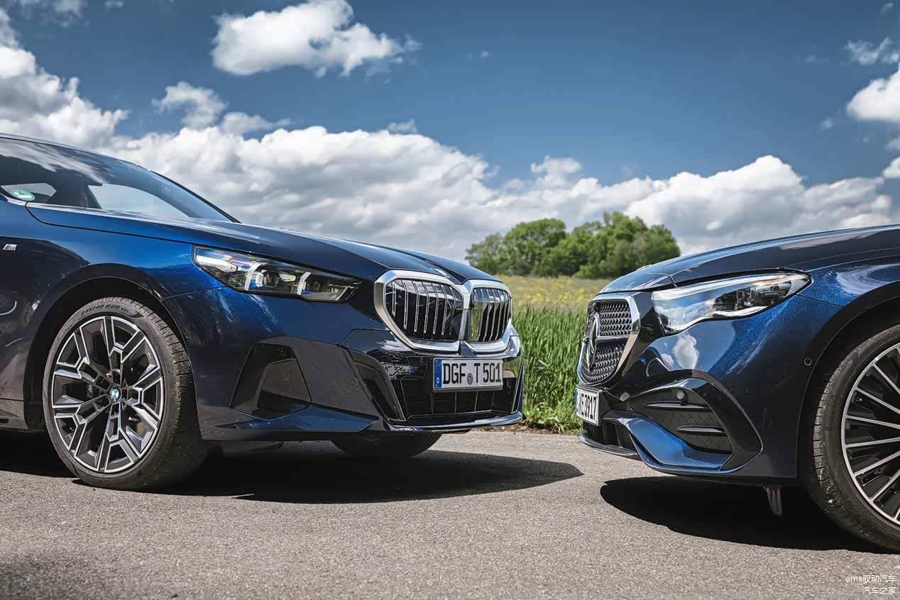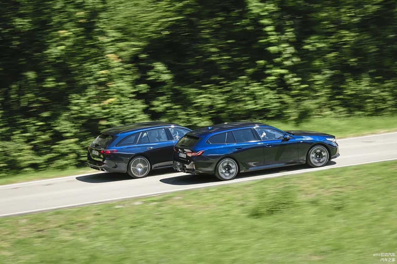 不过在横向动态表现方面BMW 5系就有点跟不上了。什么?没错,这听起来有点反常,因为实际上驾驶乐趣更多地出现在奔驰车上。奔驰车在车辆动态性能方面以及在蜿蜒的乡村道路上都表现出色,有着稳如泰山的稳定性。其转向系统凭借轻松精准的操控以及细腻的反馈令人满意,而BMW 5系的转向感觉有点不自然。宝马旅行车在弯道中虽然能长时间保持中性姿态,但侧倾会更明显,而且会更早地出现转向不足的情况。即便在开启运动模式且放松了电子稳定程序(ESP)的情况下,配备xDrive的宝马车也感觉不到那种偏向车尾的动态表现。
