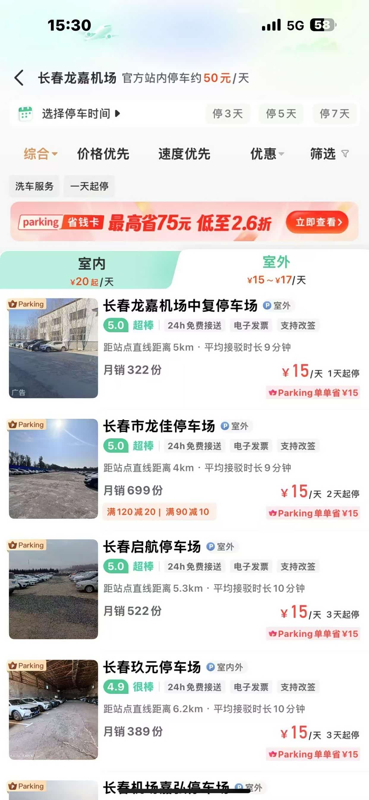 实际上,自驾前往长春龙嘉机场是个明智之选。它能给您充分的出行自由,让您自由安排时间,还能轻松带上家人和行李,免去反复搬运行李的麻烦。不过,关键是要找到性价比更高的停车方式。这里有个省钱小妙招分享给大家:通过小强停车平台,您可以选择把车停在机场周边的停车场。这些停车场离机场不远,您只需微信搜索【小强停车】在上面查看附近停车场,每天停车只需15元!输入邀请码“58”,还能领取38元停车抵扣券!和机场官方收费标准相比,这优惠力度可太大了。