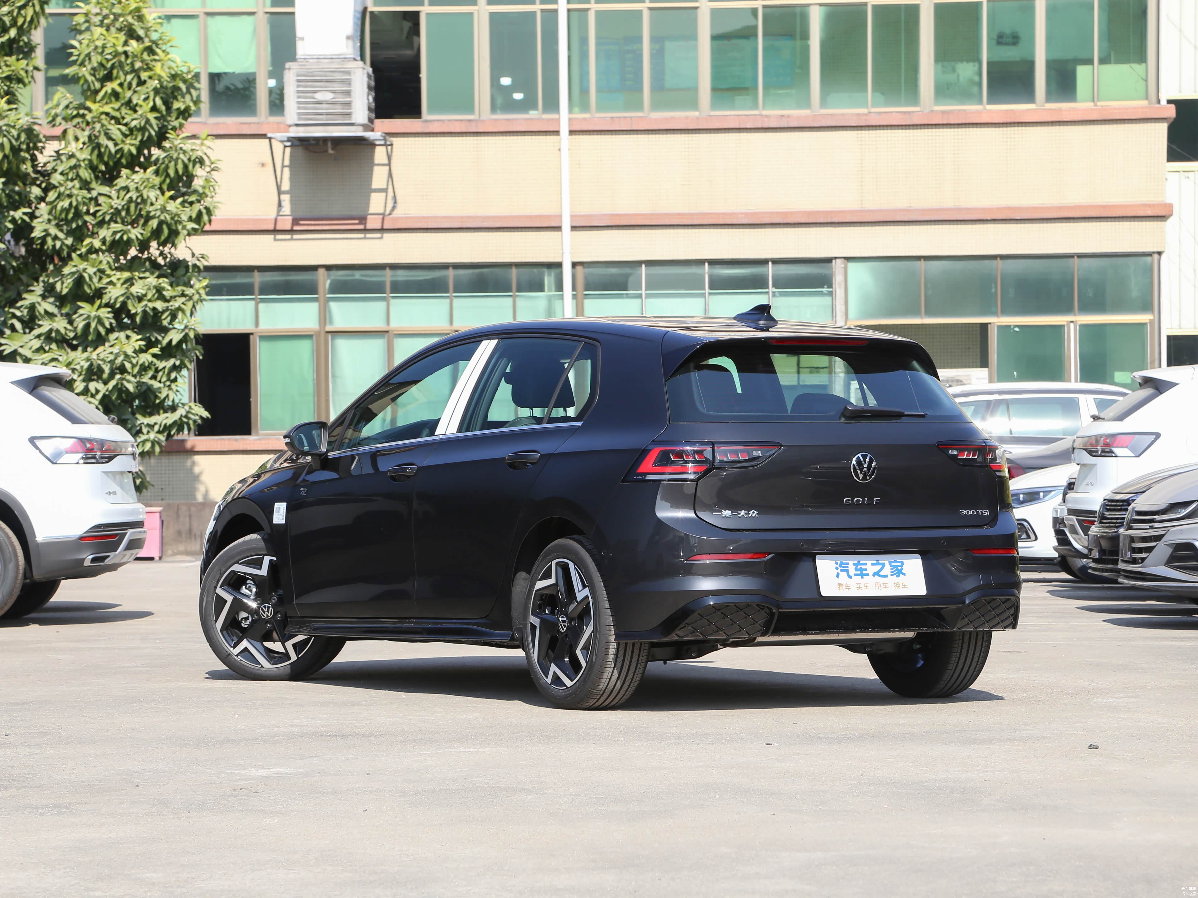 在车身尺寸方面,2025款改款高尔夫300TSI R-Line的长宽高分别为4289/1788/1479毫米,轴距为2631毫米,定位为紧凑型两厢车。此外,新车还配备了17英寸轮辋,为车辆提供了良好的行驶稳定性和视觉效果。车尾处的“300TSI”标识清晰表明了其动力信息。