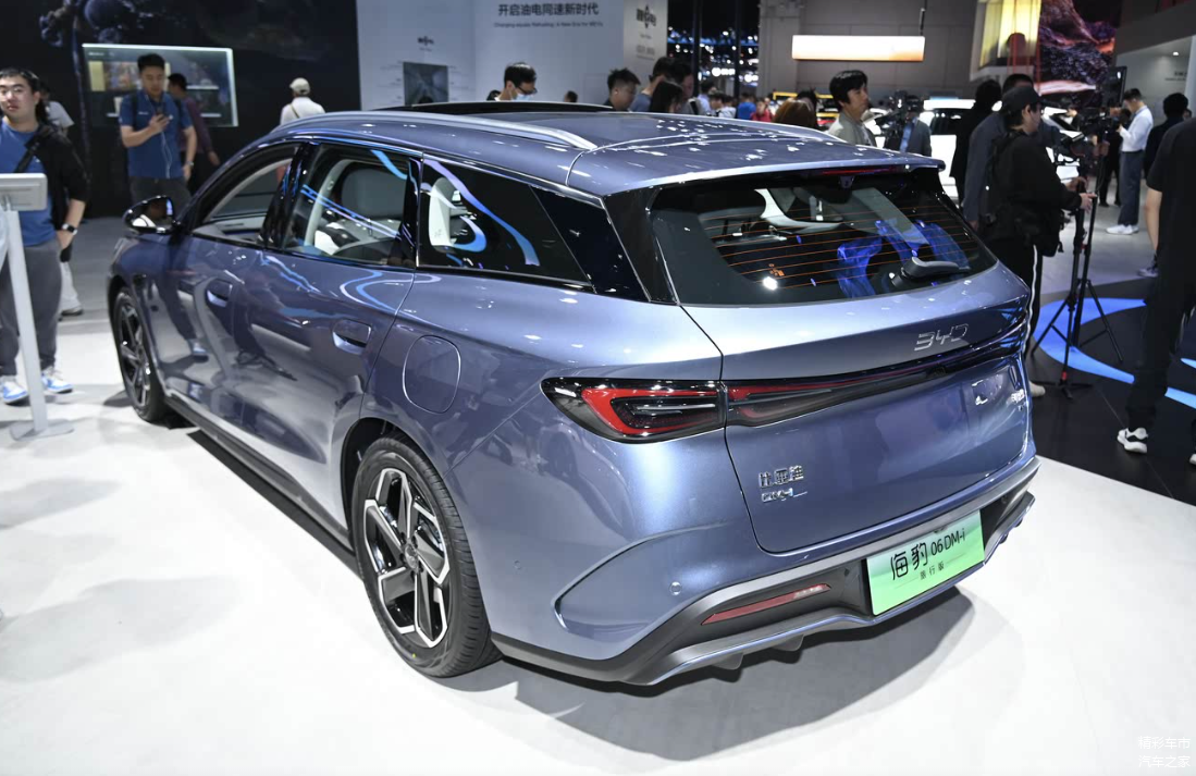 海豹06 DM - i旅行版整体延续了在售海豹06 DM - i的设计风格,前脸部分基本无变动。车尾采用典型旅行车设计语言,车顶线条更平缓延伸至尾部,后侧窗面积增大,为后排乘客提供开阔视野,车窗饰条有明显差异,更符合旅行车风格,尾窗上方配备扰流板和后雨刷,车顶标配行李架,贯穿式尾灯两侧采用双C形光源结构。