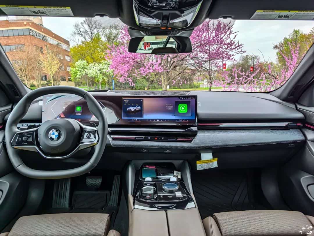 我一直认为,对于一台话题性强的车,应该多体验低配版,因为低配版往往展现了厂家对于这台车在设计之初的下限。本次的试驾车为2025款530i xDrive四驱版,可以算是配置很低的一台车了。在性能方面没有进行任何的选装,例如自适应电磁悬挂(美规不可选,国内进口版本可选),M四活塞运动卡钳等。试驾车仅在舒适配置上进行了基础选装,包括HUD抬头显示,方向盘加热,远程启动,LED自适应大灯和泊车辅助套装。