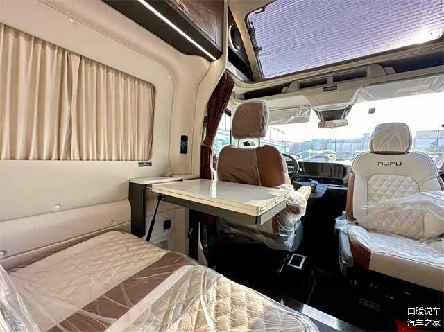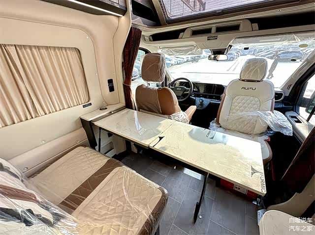 • 生活区布局:采用前置会客区、中置厨房卫浴间、后置横床的布局。采用E0级家具板材、乘用车级环保软质ABS模具内饰以及进口防水易清洁地板革,内饰配色偏向现代风格,简约高级。