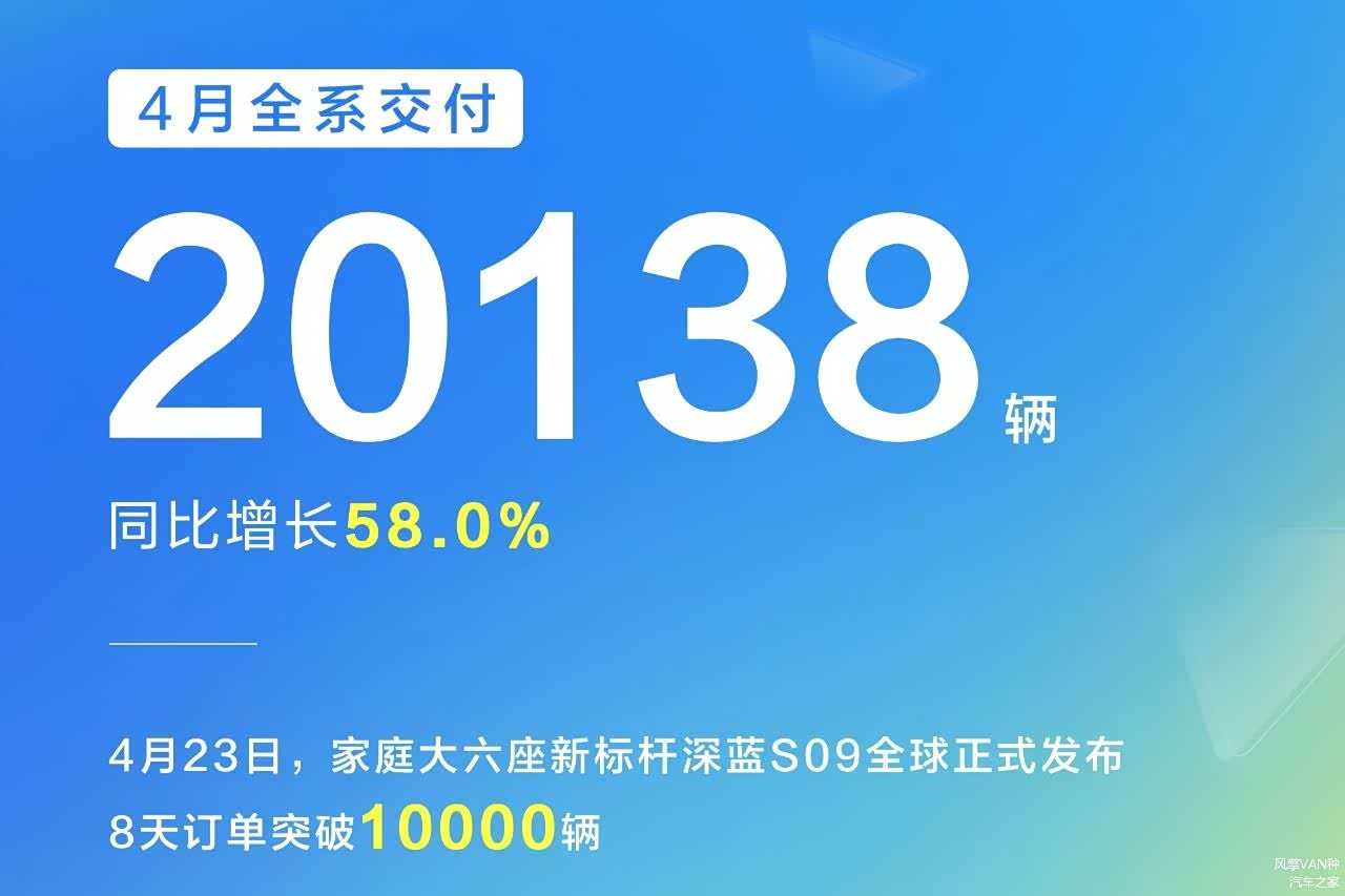 深蓝汽车日前公布了4月份的销量数据,同时还披露了深蓝S09的订单数据。
