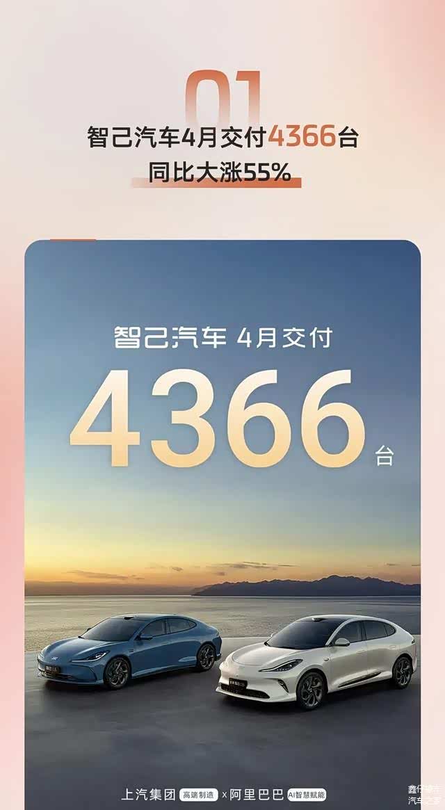 5月2日,智己汽车公布最新销量数据,总计交付4366台,同比增长55%。其中全新智己L6预售48小时订单破9000台。