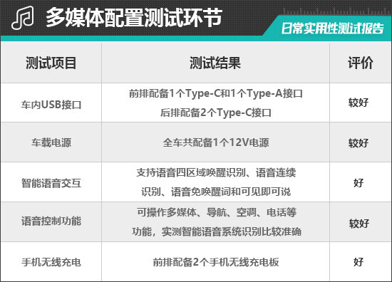 经过实测,因为配备不可开启全景天窗,所以除“打开天窗”外,评测车能够识别并执行其余全部指令,语音识别准确,反应速度较快。同时,评测车还支持四区域语音唤醒识别、语音连续识别、语音免唤醒词、可见即可说等功能,整体的使用体验感不错,达到了行业主流水平。