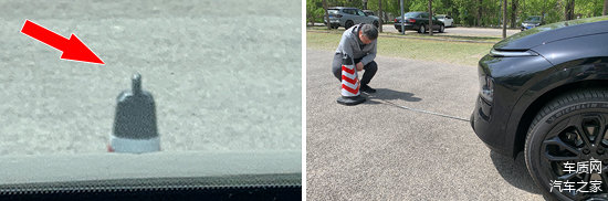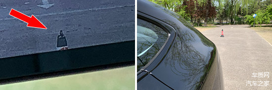 在测试前方视野环节,我们采用高70cm的桩桶作为参照物,随后调整车距,直至在主驾驶位可以看到桩桶上沿。经过测试,桩桶与车头最终测得的数据为1.795m,在测试过的同级别车型中处于上游水平。