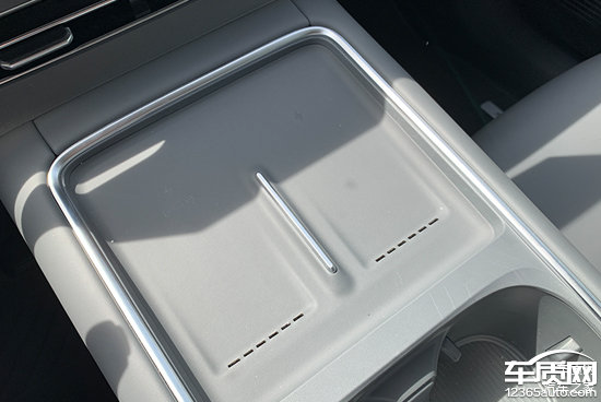 评测车在前排仪表台下方还配备了2个50W手机无线充电板,位置设计合理,驾驶员拿放手机方便。同时,无线充电板还提供通风散热口,并支持开启和关闭。
