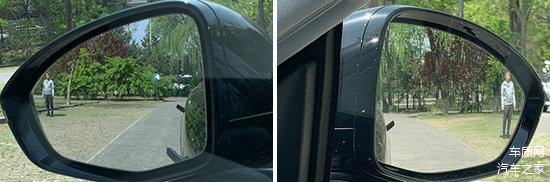 评测车左、右外后视镜均采用普通镜片。经实测,左、右外后视镜视野范围分别为24.9°和23.8°,在测试过的同级别车型中,分别处于中游和中上游水平。