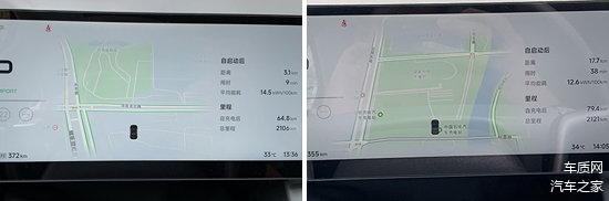 在实际测试中,将车内空调温度调至18摄氏度,并开启舒适模式。行驶路线途经城市道路和环路,平均车速为50±2km/h。到达目的地时,车辆表显的公里数增加15km,续航里程减少17m,即平均每行驶1km消耗的续航里程约为1.13km。