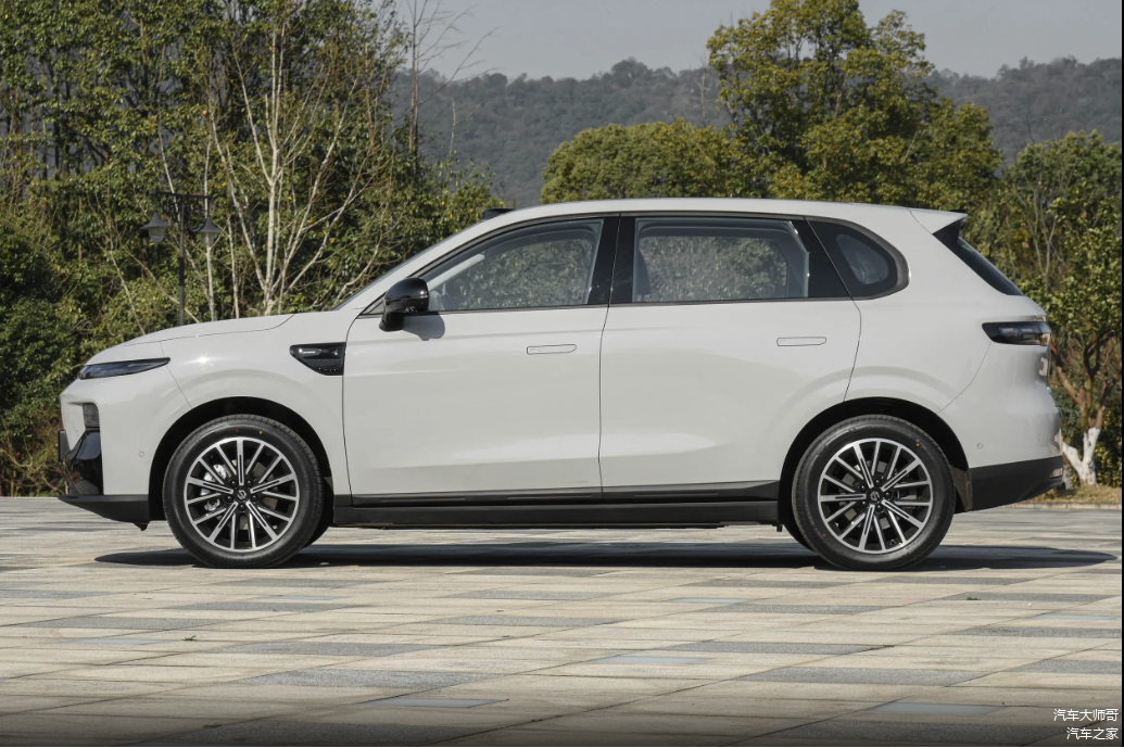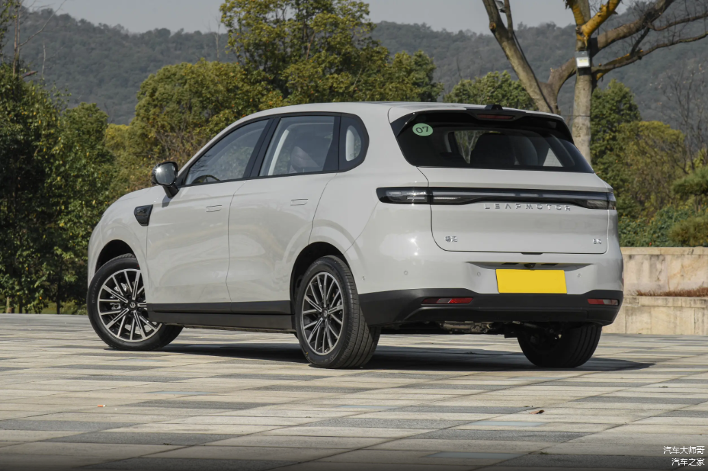 车身侧面流畅且舒展,应用了贯穿式腰线,整个轮廓与零跑C10相似,整体造型简约大气,配备隐藏式门把手和大尺寸铝合金轮圈,为了提升车辆的精致感在车窗四周还加入了高亮黑烤漆进行点缀,翼子板和车头配备激光雷达。除此之外,车辆的尾部线条流畅而富有张力,勾勒出动感十足的车尾轮廓,贯穿式尾灯设计,尾灯下方则是零跑汽车的英文LEAPMOTOR,后包围两侧融入了后示宽灯设计。