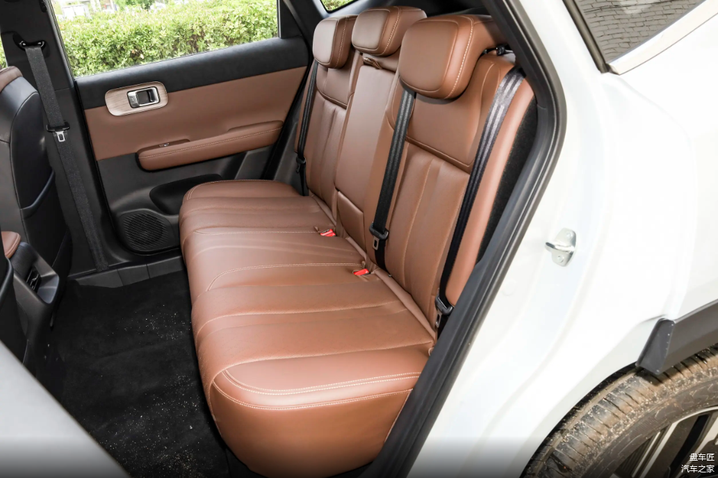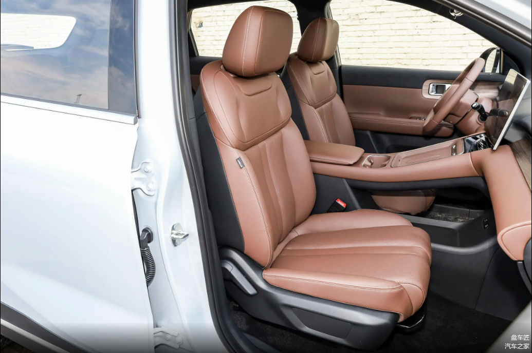 前排座椅用了皮质软包,乘坐非常舒适,表面还有打孔,带加热和通风功能,主副驾都有电动调节。座椅还可以180°放平,靠背与后排坐垫齐平连成床,打造“躺平生活空间”。后排525mm的座垫长度甚至超过了一些中型轿车的座椅,给乘客提供不错的腿部承托性和舒适性,后排座椅靠背角度可调,并带有加热功能。