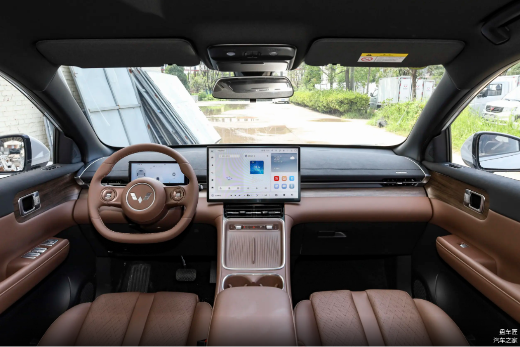 内饰方面,五菱星光S的车内整体是简约居家风,用了大面积的软包材料,还有木纹饰板,看着摸着都挺舒服的,很有档次。车内物理按键的数量不多,只在方向盘和中控台下方保留了一些功能操作物理按键。采用怀挡结构,节省出来的位置都给了储物空间,这里有手机充电板,还有杯架、掏空储物格和一个容积非常不错的扶手箱,全车共有23处实用储物空间,家用属性拉满了。