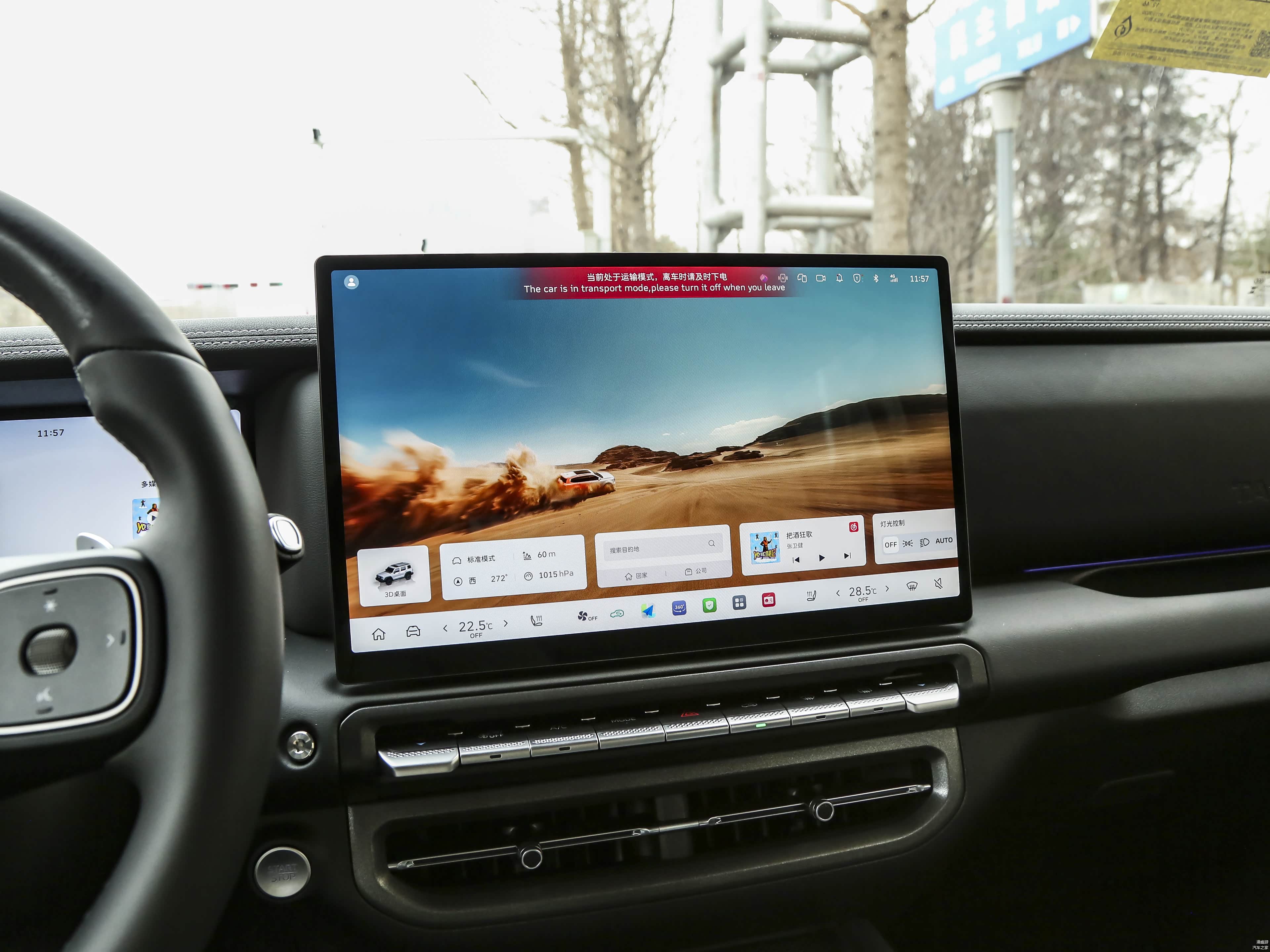 内饰方面,方程豹钛3配备四辐式多功能方向盘,并且配有驾驶模式、地形模式滚轮。中控台配备8.8英寸悬浮式全液晶仪表和15.6英寸中控屏,并提供12英寸HUD抬头显示。搭载全新的DiLink车载智能系统,支持百度导航、5G网络、四音区智能语音识别等功能。新车采用5座布局,支持前排座椅电动调节、座椅通风加热等功能。此外,新车还配备了全景天窗、360度全景影像、50W手机无线充电,高配车型还拥有帝瓦雷音响、车载冰箱等配置。