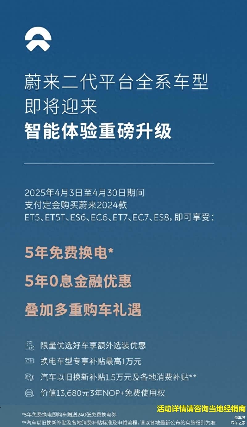 在补贴方面,蔚来ES6同样表现不错,换电车型专享补贴最高可达 1 万元,汽车以旧换新补贴也比较丰厚,有1.5万元。再加上各地根据自身情况推出的消费补贴,购车成本能大幅降低。就像在北京地区,消费者在享受国家和地方补贴的基础上,再加上蔚来的这些补贴政策,购买蔚来 ES6 能节省数万元。而且,现在购车还能享受3年 NOP+免费使用权。NOP+作为蔚来精心打造的高阶智能驾驶辅助系统,有很高的价值,这无疑为你节省了购买智能驾驶服务的费用,从长远看,是一笔很可观的节省。