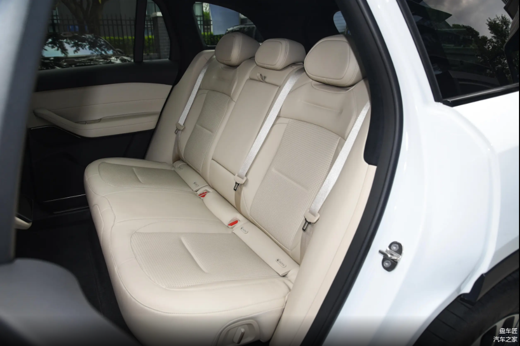 尺寸方面,新车的三围尺寸依次为4854/1995/1703mm,轴距达到了2915mm。我个人身高为180cm,坐进前排调整好坐姿并将座椅调至最低,头部空间1拳三指左右,非常宽裕。保持前排座椅位置不变,再次来到后排,头部空间1拳左右,腿部空间2拳左右,510mm长坐垫,长坐垫大腿支撑更到位。得益于较为宽大的车身,后排中间座椅坐垫较宽且平整,成年乘客也能获得一个比较舒适的坐姿。